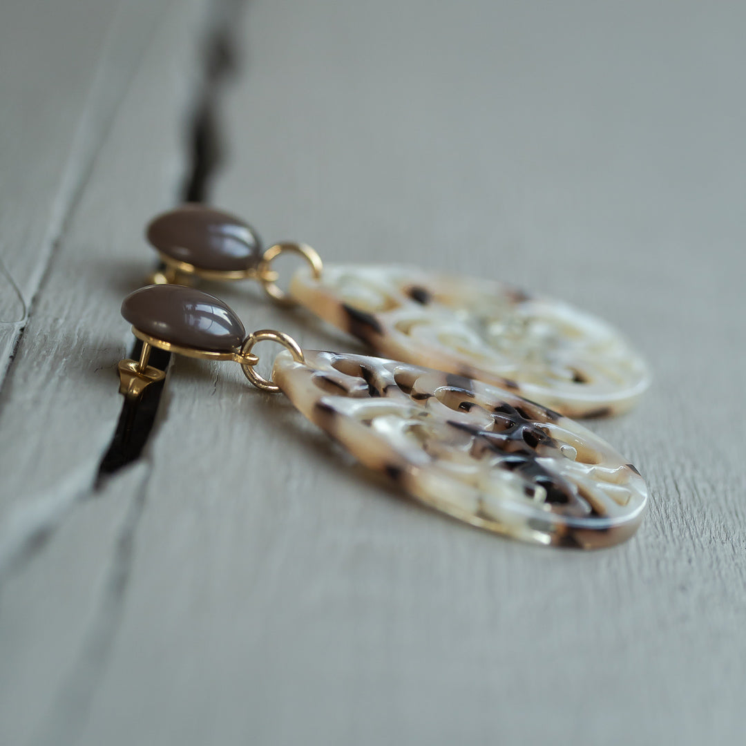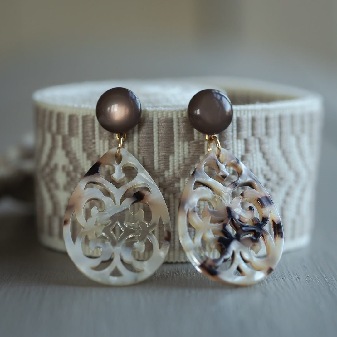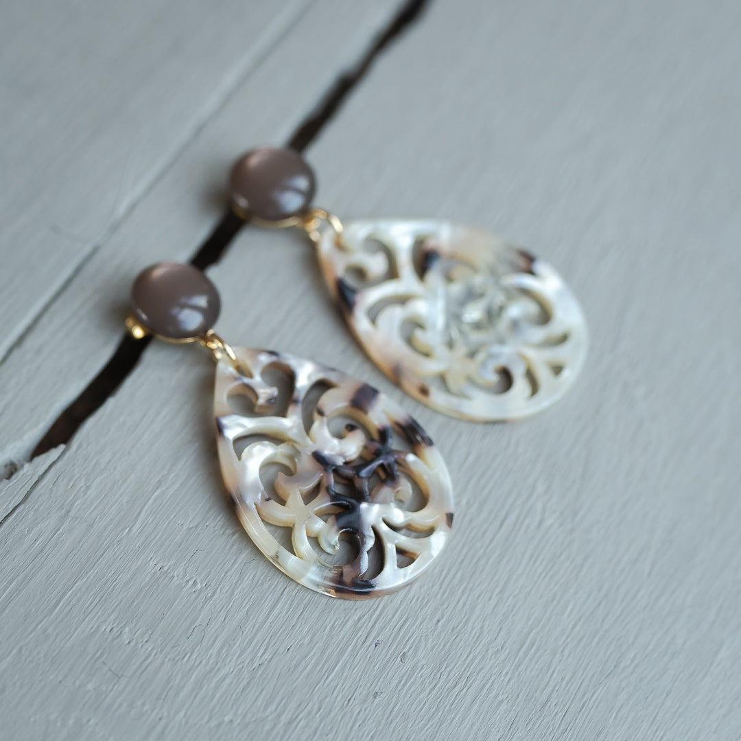 Ornament-Ohrringe Annabelle in Anthrazit mit rose Cabochon