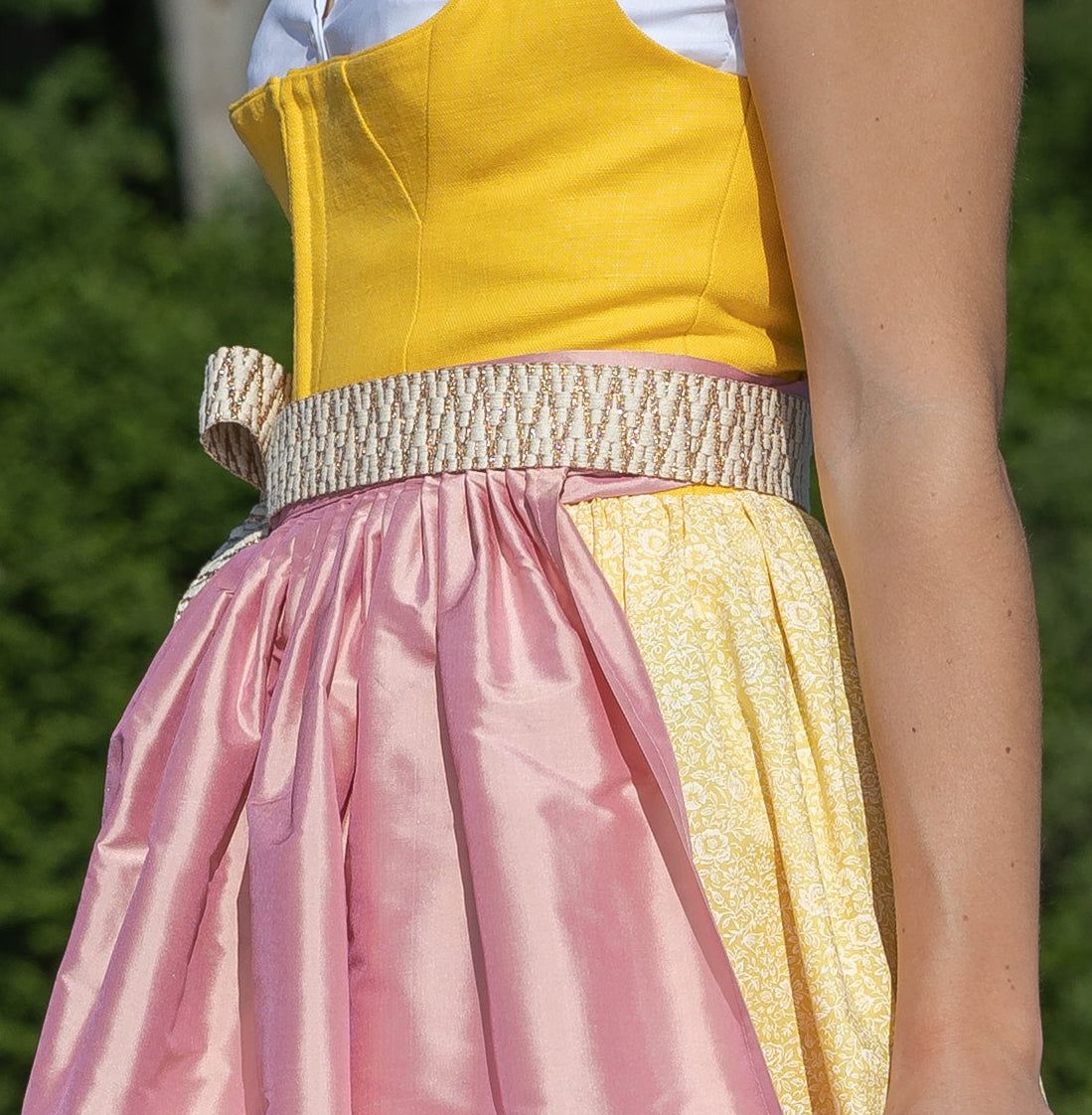 ✨ Besonders schön: In Kombination mit unserem Gelben Dirndl und der Rose färbenden Seidenschürze.