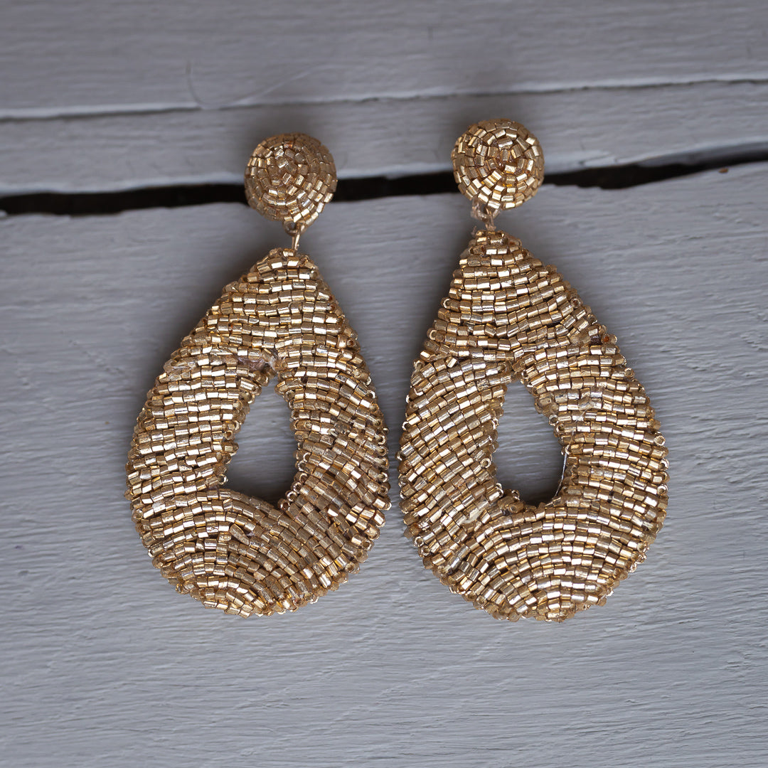 Diese goldenen Statement-Ohrringe sind der perfekte Begleiter für alle, die ihrem Look mit wenig Aufwand einen eleganten Akzent verleihen möchten. Die Tropfenform wirkt modern und feminin, während die fein schimmernden Glasperlen das Licht wunderschön einfangen – ideal für festliche Anlässe, Events oder als besonderes Highlight im Alltag.