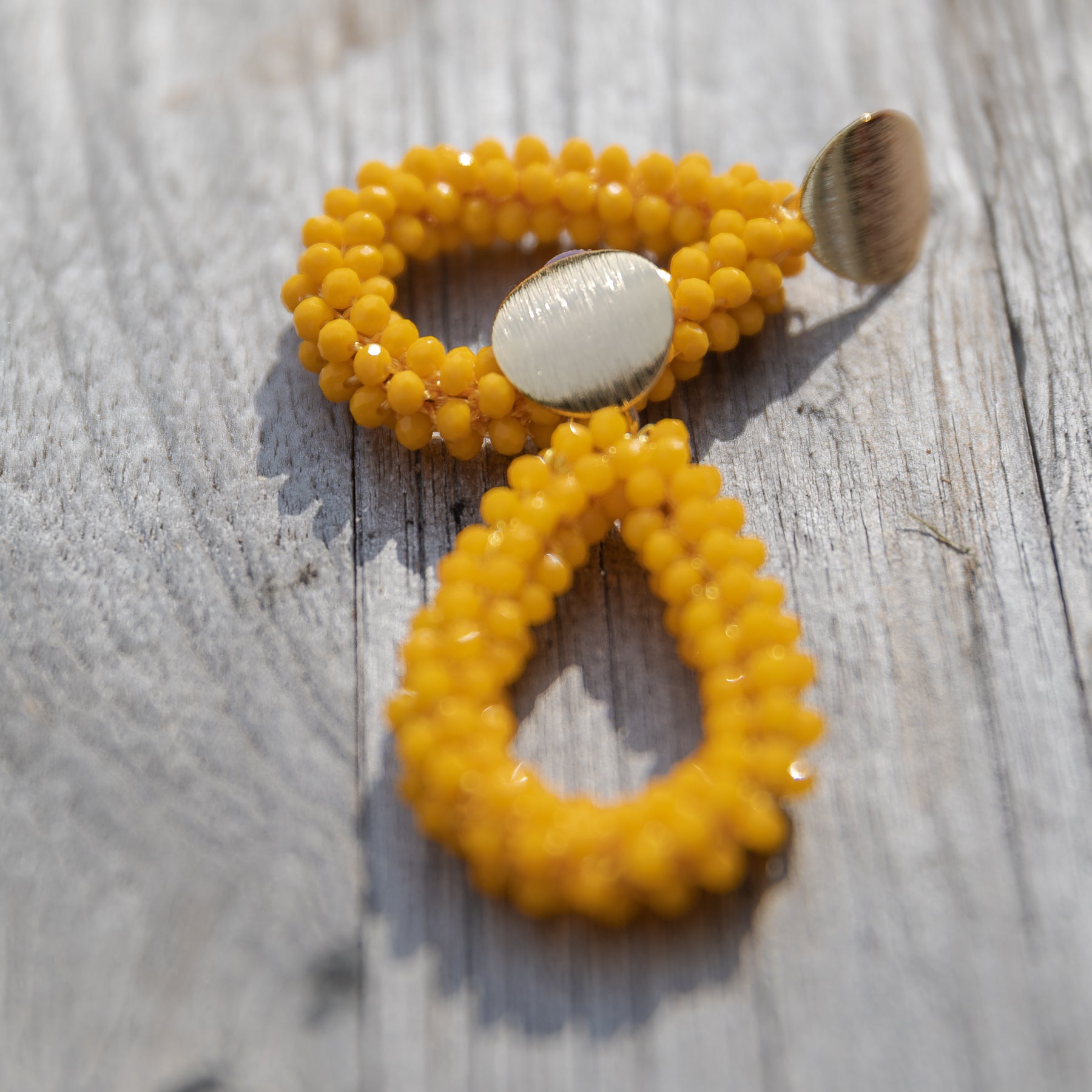 Mit den Tropfen-Ohrringen „Clementine“ bringst du Sommerlaune in jeden Look. Die facettierten Glasperlen in strahlendem Gelb fangen das Licht perfekt ein und setzen leuchtende Akzente.